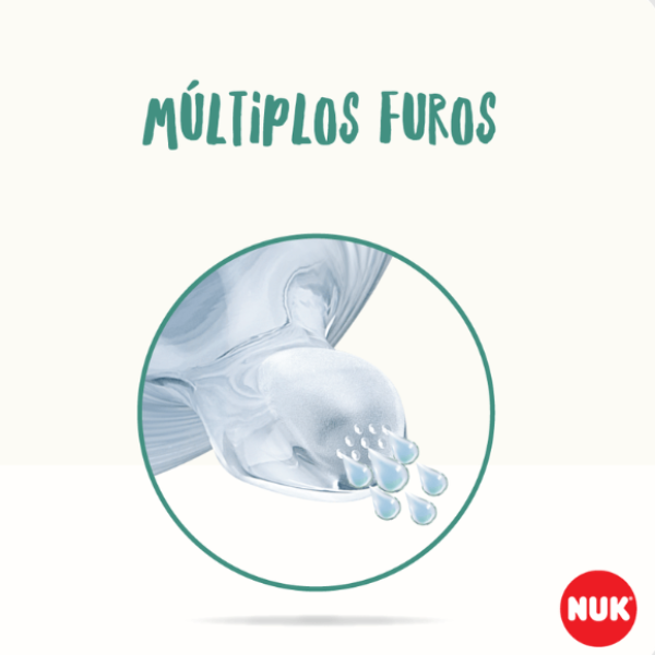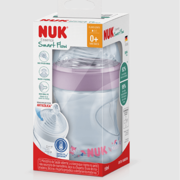 A Mamadeira Anticólica NUK Essence Smart Flow possui bico com tecnologia inovadora composta por sistema de fluxo de líquidos com múltiplos furos, que